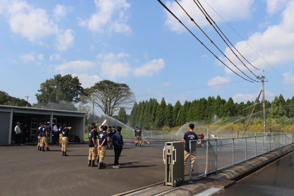 午後からは、曽於南部土地改良区の職員より散水器具の紹介があり、作物によって使用されるスプリンクラーが異なることを学びました。勢いよく散水される水を間近に目にし、その迫力に驚いた様子でした。