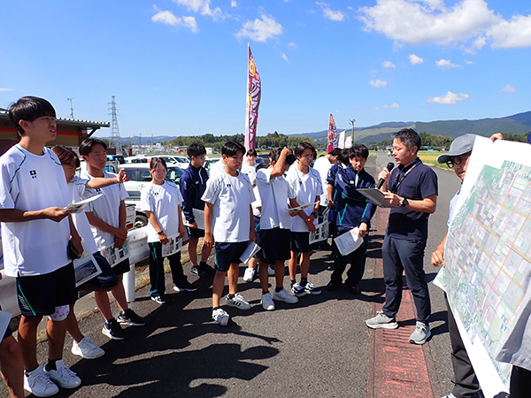 午後からは、伊佐市大口の中央部に位置する「大田地区」において実施される「ほ場整備事業」について、県姶良伊佐地域振興局農村整備課の担当職員から施工内容についての説明を聞きました。この地区では田んぼダムも実施される予定になっており、田んぼが防災にも役立つことに生徒達は関心を示していました。